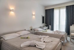 This Paros hotel is fully furnished, air-conditioned rooms with a private balcony or patio, TV, refrigerator, Wi-Fi, and breakfast are available for 1–5 persons at Hotel Aegeon. The complex's main structure has a lounge, breakfast room, swimming pool, and garden with seating.