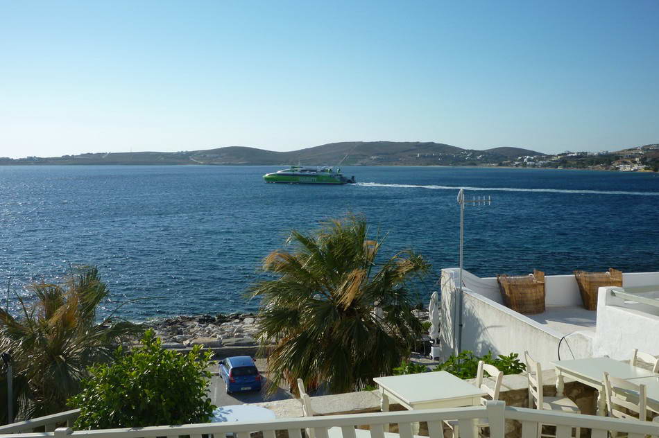 Nestled in a bay with postcard views of the port of Parikia, Hotel Paros is ideally situated for an unforgettable visit to one of the Aegean's most beautiful islands. Overlooking a sandy beach dotted with jewel-like pebbles and shells, Hotel Paros offers unsurpassed views of some of the Aegean's most spectacular sunsets, whether from our beach café or our classic double rooms on the upper floor. All of the rooms include TVs, air conditioning, and refrigerators, and a few of them have balconies with views of the sea. The hotel's restaurant serves traditional Greek cuisine and welcomes you with warm hospitality. The terrace offers stunning sunset views. Every day there is continental breakfast given.