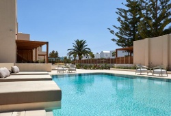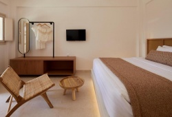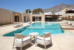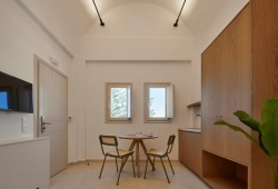 The Apricus Suites Hotel is located not far from Perissa, a well-known black sand beach in Santorini. A charming hotel with all suites designed for those who want easy elegance in a peaceful setting. Visitors are welcome to make full use of the amenities, unwind by the pool, and sip drinks while reading a book. With great attention to detail, Apricus Suites produces warm, open areas as well as large, airy rooms with an organic style and modern interiors that are furnished with all the amenities of today.