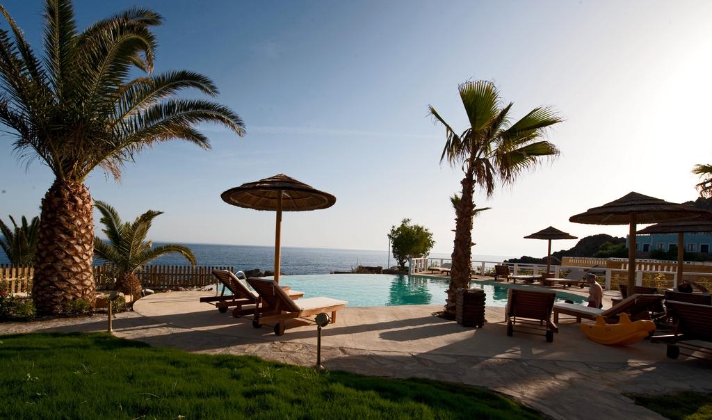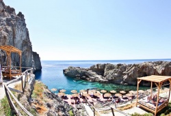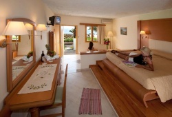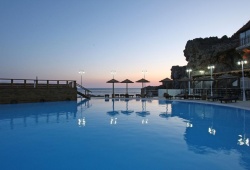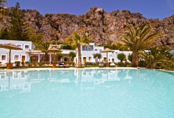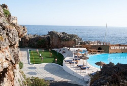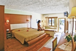The 4* Kalypso Cretan Village Resort is located on the Karavos Coast near Plakias, 110 kilometers from Heraklion Airport, and 31 km south of Rethymnon, making it the southernmost hotel in Europe. There are just 125 bungalows at the hotel, all designed in keeping with indigenous architecture, contemporary amenities, and balconies or terraces overlooking the sea. The come with an air-condition, satellite TV with two music channels, mini fridge, coffee maker and water boiler (free of charge).They also have a small safe and internet access which is charged. In addition, the hotel features three bars, a disco, a pirate-themed café, a minimarket, the boutique CRETA NATURA, two restaurants with spacious verandas and breathtaking views, one tennis court, and one volley ball area.