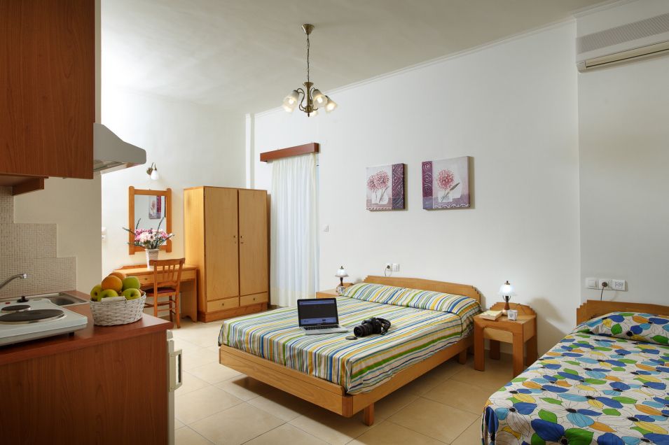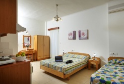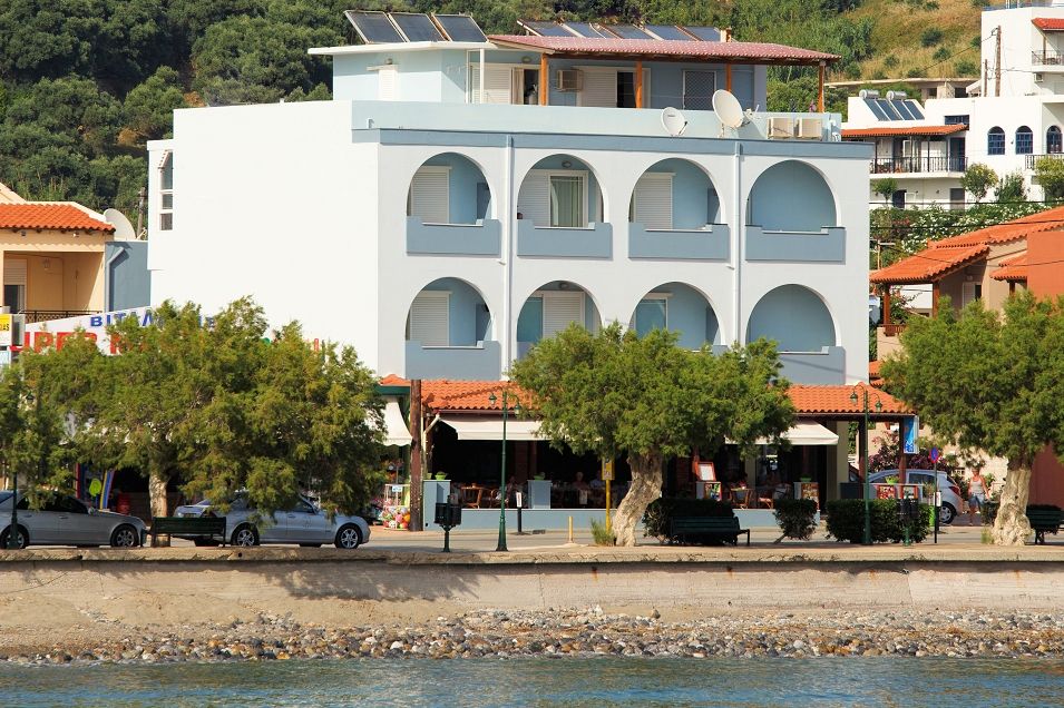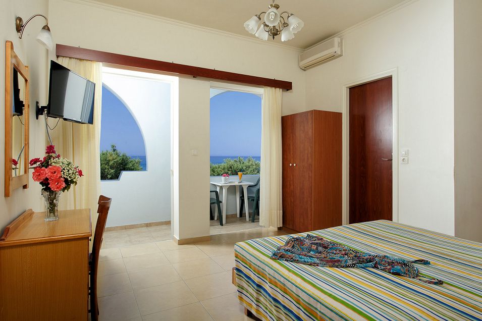 Livikon Beach Hotel is a family run hotel, located on the sandy beach of Plakias Bay at the South coast of Crete facing the Libyan Sea. The Kotsifou Gorge and the rebellious Kouroupa mountains can be seen in the distance. You're invited to have a fantastic vacation in spacious studios and double or triple accommodations, which provide beautiful views of the port of Plakias and the Cretan mountains. This Plakias hotel offers 10 spacious double bed and triple bed rooms and a penthouse. They come with the amenities needed for a comfortable stay. For all of Plakias' vacationing visitors, there is a snack bar Café Livikon on the ground floor. It is spotless, cozy, and offers a great view of the sea.