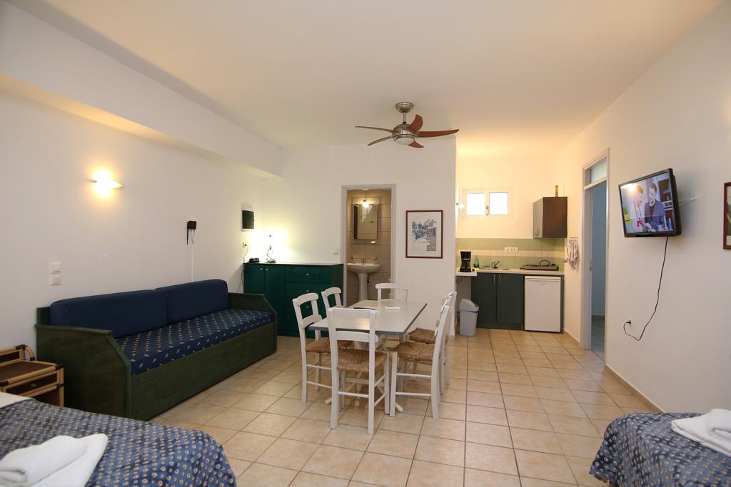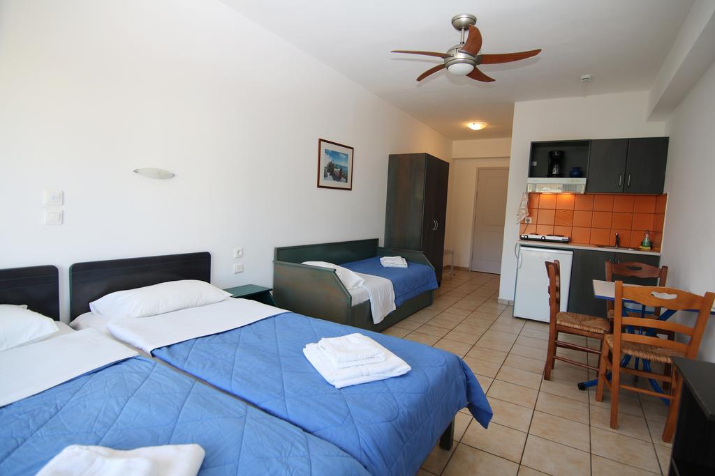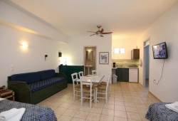 Near Platanias, Chania, in the western region of Crete, is Hotel Evropi. It is in a peaceful area, 300 meters from the beach and Platanias' center. There are large apartments, a big pool with a lovely bar and restaurant, and the most suitable atmosphere to enjoy your vacation. Hotel Evropi's apartments are large and bright. Amenities come with air Conditioning, Ceiling Fan , Flat Screen TV, Kitchenette , Fridge , Wi-Fi (free of charge) , Filter coffee machine and Safe box.