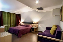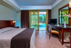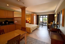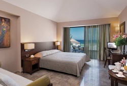 It is consisted double rooms, maisonettes and studios of twin beds, or a double bed, extra persons with a large marble bathroom with bathtub, hair dryer, individually controlled A/C, color Satellite TV, music channels, direct dial telephone, Internet access (ISDN), mini bar (available upon request), safe deposit box and balcony or veranda. Views are pool, garden, side sea view or sea view.
