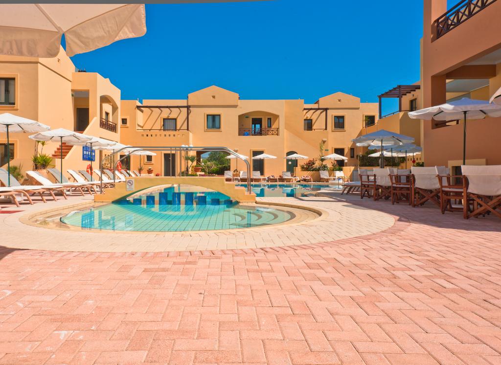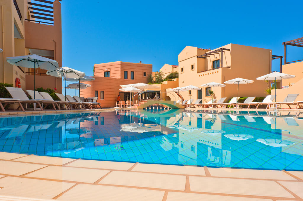 Sitting right on the beach, the four-star Silver Beach Hotel is a short stroll from the vibrant Platanias. The earthy tones of its architecture complement the lush vegetation that surrounds the resort, and the greenery creates an exotic scene against the deep blue of the sea under the clear Cretan sky. Visitors may enjoy an earthly paradise and have a unique hotel stay thanks to its prime position in a serene and tranquil neighborhood just close to the sea. Hotel facilities include swimming pool, gym, restaurant & bar and sport facilities. The rooms are fine decorated and comfortable with all the amenities needed for your stay.