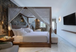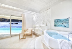 One may find some of the most exquisite boutique hotels in Mykonos, Greece, by gazing over Psarou Beach. That Nissaki boutique hotel is a beautiful location. This stunning five-star hotel, which is located next to the well-known Platis Gyalos Beach and overlooks Psarou Beach, is sure to win your heart. This Mykonos hote has various room types like Saltwater Double Executive Sea View, Island Lover Suite Sea View with Sea View or Jacuzzi, Dreamy Honeymonn Suite with Jacuzzi & Sea View and Nissaki VIP Suite with Jacuzzi & Sea View. The amenities are much the same invluding each with satellite TVs, bathroom amenities, airconditioning, minibar, CD and DVD players and private sea-view balcony.