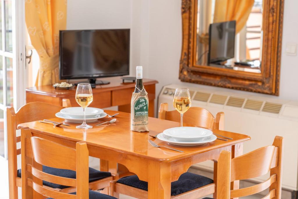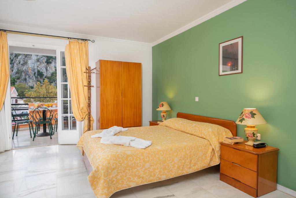 In the Poros area of Kefalonia, amidst lush vegetation, is the modest hotel Odysseus Palace. A restaurant and bar are among the amenities. The airy and light studios provide a dining and seating space as well as a full-sized kitchen with refrigerator. Each offers two spacious balconies with views of the town or the sea, and air conditioning. Visitors can cook for themselves or dine at the on-site restaurant serving Greek and other cuisines. You may easily stroll to Poros Beach, which offers a variety of water activities. Poros is 42 kilometers from Argostoli. The river Vohinas flows through the stunning Poros Gorge, an amazing geological wonder, as one approaches the settlement from that direction. Make Kefalonia Island your next destination and select Odysseus Palace Hotel in Poros as your accommodation. The hotel has everything for a relaxing and memorable holiday.