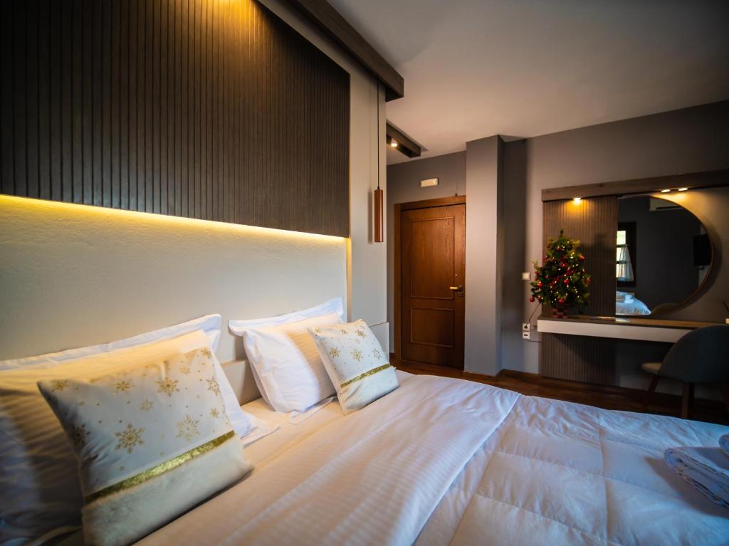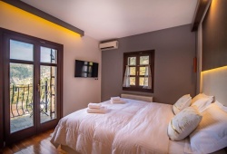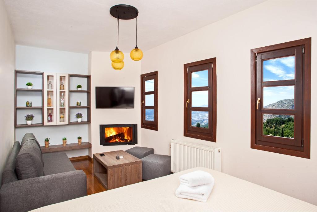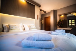 You are invited to stay at the Erofili Hotel, which offers a variety of lodging options in the charming village of Portaria, Pelion. Built amphitheatrically on a slope, the Erofili Hotel and Suites is situated in one of the most attractive areas of the area and offers stunning views of the surrounding countryside, making it the ideal destination for a peaceful rural retreat in Pelion. Following a recent makeover, this historic hotel in Portaria now offers visitors the essentials of a fantastic stay in a cozy, rustic, but stylish setting. Every tastefully furnished guestroom has a cozy and welcoming ambiance. Every room has an LCD TV and an en suite bathroom. Free toiletries, bathrobes, and slippers are available in the bathroom. Enjoy breakfast every morning, and later in the day, stop by the bar lounge for a drink. Taking the road to the Pelion ski resort of "Chania," Portaria is only 15 kilometers from the city of Volos. The hotel is located within 2 km from Portaria and the Erofili Hotel and Suites, at the intersection of the historic village of Makrinitsa. With its charming old square and quaint streets, Makrinitsa is a great nearby excursion. It is located on a picturesque hillside with a view of Volos.