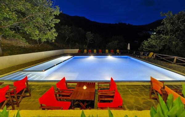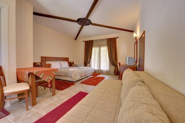 Hotel Tsigoura is located in the village of Mikros Prinos (Megalo Kazaviti), which is on a hill. The hotel Tsigoura in Thassos has an ideal location for those who want peace and a real vacation. The rooms are neat and pleasant and provide all the amenities needed for a comfortable stay. They come with airconditiong, TV, fridge, bathroom with hairdryer, coffee maker, Wifi and balcony. It is a complex that has four apartments and eight studios in two buildings, so that on the ground floor and on the first floor there are one apartment and two studios. All units are the same. The hotel has a swimming pool, bar, and restaurant where half-board can be paid. Parking is free for your private or rental car.