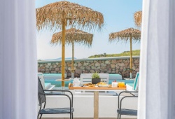 In the Pyrgos region of Santorini, the quaint Impressive One Hotel is a Cycladic complex that will make your stay unforgettable. Because of its position, it's the ideal place to start exploring the island's many attractions. Experience the unique Cycladic architecture and minimalist design along with outstanding services to immerse yourself in authentic Santorinian hospitality. Impressive One's rooms and suites have tastefully designed furnishings, muted colors, air conditioning, a minibar, and a flat-screen satellite TV. Every apartment has a contemporary bathroom with amenities, and many rooms further provide a lounge space. Most of the balconies have views of the sea, mountains, or pool for guests to enjoy. Breakfast is served daily to start your sightseeing tours.