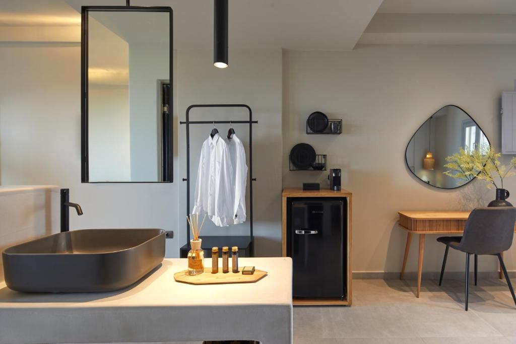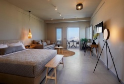 In Pyrgos Santorini village, a sanctuary of peace has been established. Situated on the most stunning island in the Aegean, Mayu Suites offers accommodations for a spiritual getaway. You are welcomed to enjoy your getaway in Santorini, from the tranquil hideaways of rooms in Pyrgos to the gorgeous swimming pool and lounge with views of the sea and sunset. Soothened by the view of the stunning Santorinian landscape, the sunset, and the Aegean Sea that extends on the horizon, Mayu Suites offers a magnificent choice of suites in Santorini that are constructed with a passion for modern design and natural textures. Take pleasure in a getaway that skillfully blends style and leisure. Offers air-conditioned suites with desks, coffee makers, refrigerators, safety deposit boxes, flat-screen TVs, balconies, and private bathrooms with bathtubs to visitors. Every suite at the aparthotel has a kettle, and some have views of the inner courtyard.