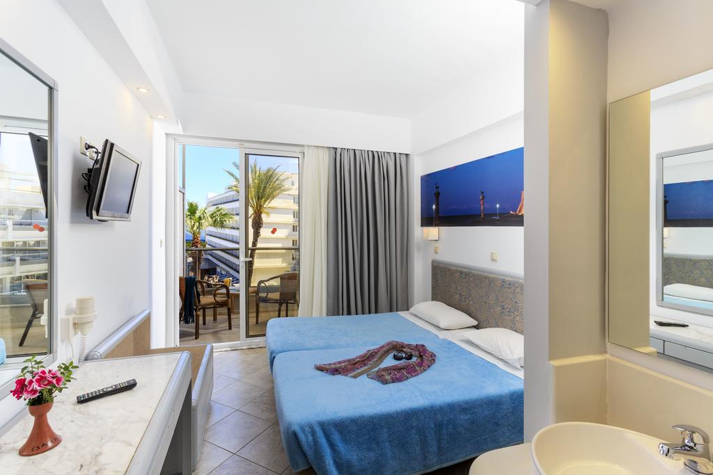 Esperia City Hotel is a 3-star hotel in the heart of the city of Rhodes. A member of Esperia Group Hotels, which, in combination with the location in the city centre, makes your stay in Rhodes comfortable and memorable. Esperia City Hotel is only 100 metres from the beach. The rooms are equipped with satellite TV, radio and fridge. Each has air conditioning and a private bathroom with hairdryer. An American breakfast is served daily in the dining area to start your day for sightseeing in Rhodes. Guests of the Hotel Esperia can also enjoy snacks at the poolbar, while the bar in the lobby serves cocktails, coffee, and other drinks.