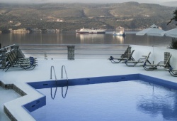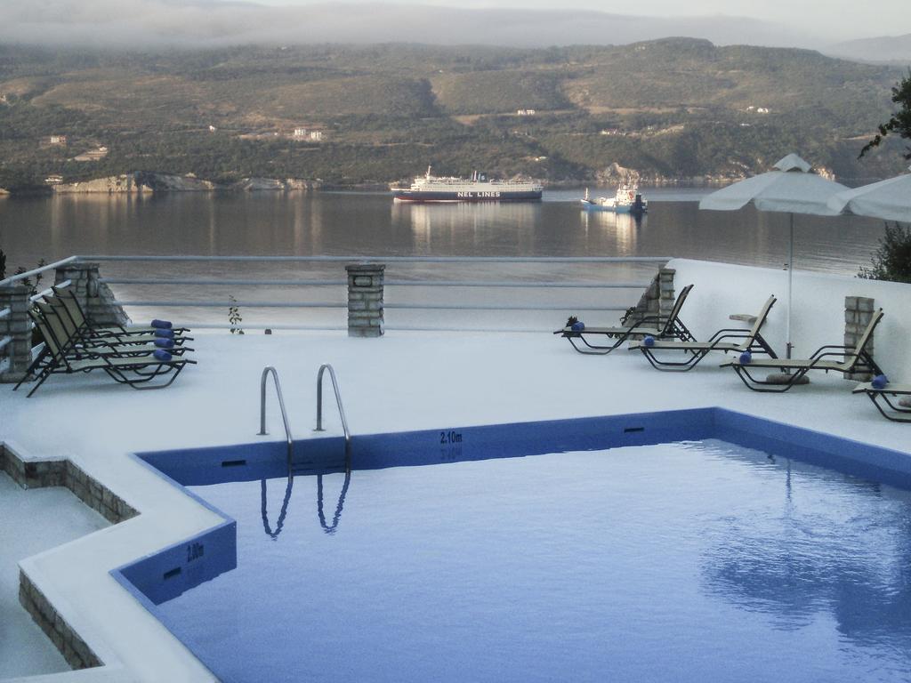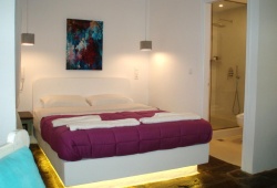 With ten rooms and four apartments overlooking the sea and the Gulf of Samos, Scorpios Suites is a three-star hotel in Samos Town that provides guests with carefree and tranquil vacations. The rooms are clean and spacious, with amenities such as air conditioning, fridge, kettle, bathroom with toiletries, hairdryer, TV, telephone, Wifi and balcony. Deluxe suites are equipped with an office area, and a well-equipped small kitchen (without oven) for the preparation of cold plates. Scorpios hotel has an expansive swimming pool with immaculate, glistening waters, cozy sunloungers, and a view of the sea. A well-known traditional Samian breakfast is served in the snack bar with views of the garden and pool.