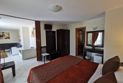 It is without a doubt the greatest complex in the area because of the waterslides, the welcoming family atmosphere, and the excellent service. The Sidari Water Park Hotel in Corfu is perfect for families and anyone looking for some quiet time. It is only five minutes from the beach and the main road, making it both walkable to the busy Sidari center and far enough away for a restful night's sleep. Every room at the hotel has a seating area, a refrigerator, a safety deposit box, a flat-screen TV with satellite channels, and a private bathroom with a shower, complimentary amenities, and a hair dryer. A kettle is provided in each room, and some of the rooms have a patio, while others offer views of the sea. Also features a seasonal outdoor swimming pool, free private parking, a fitness center, a children's playground, a restaurant/bar, and water park facilities. A continental, full English/Irish, or American breakfast is available at the property. The Sidari Waterpark hotel is 2 kilometers from Canal D'Amour Beach, and Corfu International Airport is 35 km away.
