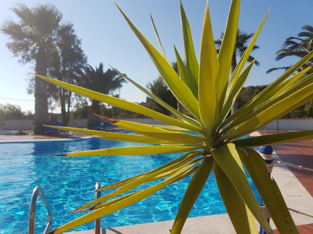 Excellent accommodation and welcoming service are provided at the Orama Hotel on Sigri on Lesvos Island. They welcome visitors to their well-maintained and designed space and promise a comfortable and restful stay. Each of the hotel's five double/twin and three triple rooms has a private bathroom, air conditioning, a TV, a refrigerator, a safety deposit box, a phone, and a private terrace with views of the Aegean Sea. Triple rooms can hold up to four people with an additional bed, while double or twin rooms can be used for single occupancy. Enjoy moments of pleasure and peace by swimming in the pool, sipping cocktails, strolling in the lush garden, taking in the breathtaking sunsets, and dining or drinking at the pool bar. The hotel is located only a few minutes from the port of Sigri, just 600 meters from the beach, and approximately 100 kilometers from the town of Mytilini. The Orama Hotel is an excellent choice for your stay in Lesvos.