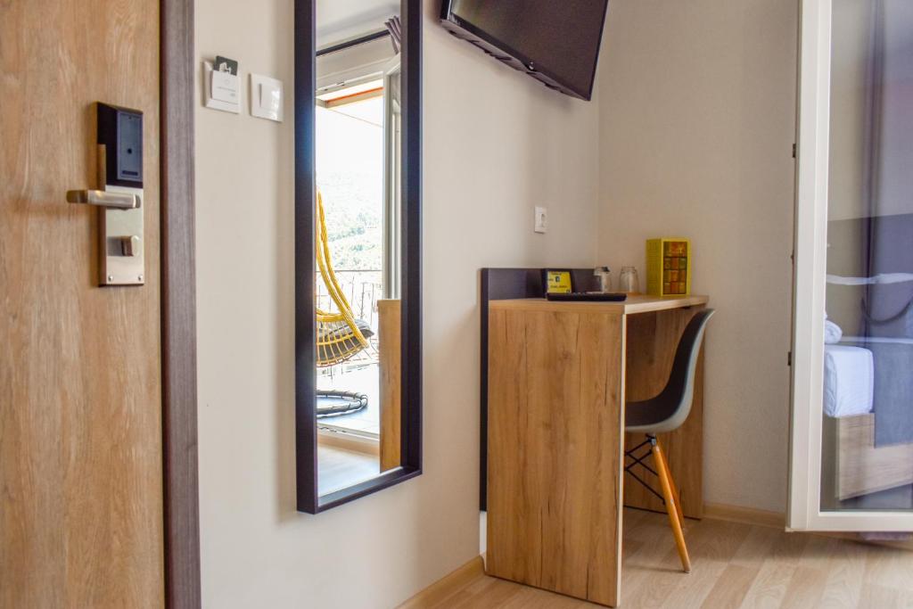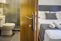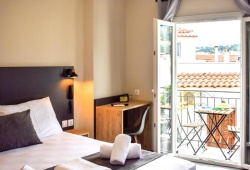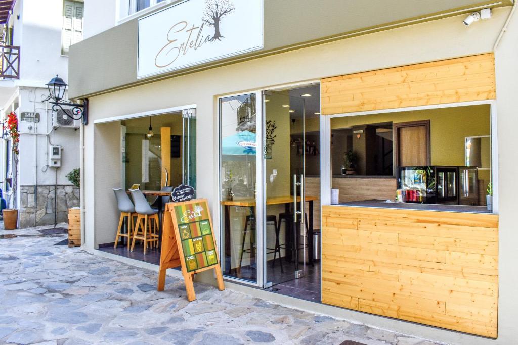 Entelia Hotel is located in the heart of Skiathos, offering luxury accommodations for a comfortable stay. Entelia consists of 11 rooms that meet all modern requirements, and they come with air conditioning, a flat-screen TV, a private bathroom with a shower and complimentary toiletries, and some have a terrace. Every room will have a refrigerator for visitors. The hotel has a bar and free WiFi throughout the property. It takes five minutes to get from the harbor to the heart of Skiathos. There, you can explore a vast array of restaurants, cafes, bars, and shops. Three minutes away is the home of renowned Greek author Alexandros Papadiamantis, and twelve minutes away is the beach known as Megali Ammos. The Entelia hotel is 25 minutes from Skiathos Airport.