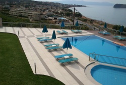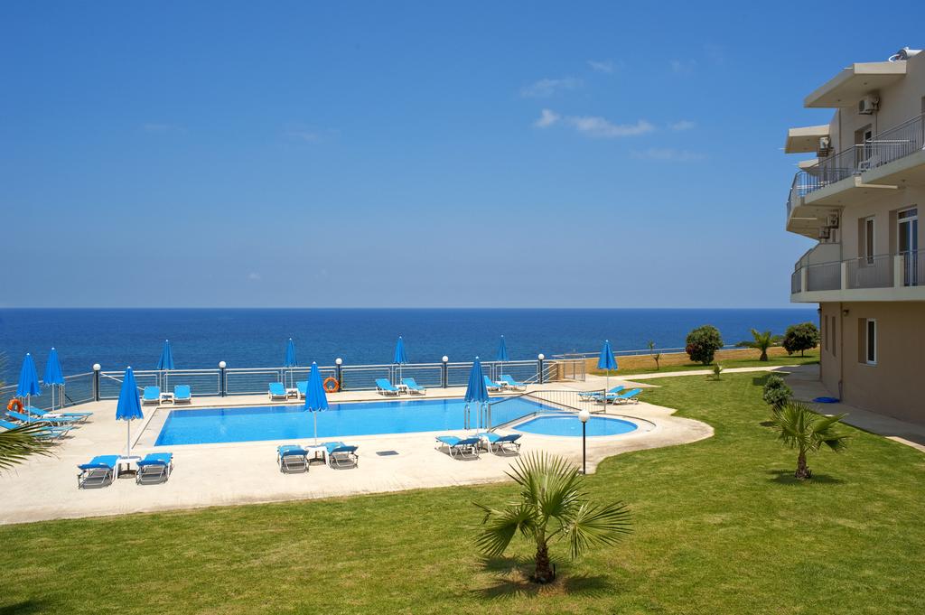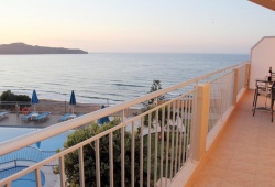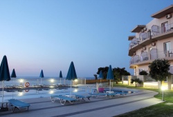 With expansive vistas of St. Theodore Island and the boundless Aegean Sea, the Renieris Hotel is perched above Stalos Bay in Chania. Because of the superb service and reputation, many guests come back to Renieris year after year. Each room has an own balcony, air conditioning, satellite TV, and a refrigerator. Rooms with connected bathrooms are also available. There is a safety box available as well; fees apply. The spotless pool is complemented with sun loungers and umbrellas by a breakfast area bar that provides snacks and drinks all day. The meticulously maintained, lush gardens add even more to the serene ambiance. A sandy beach with blue flag certification that is dotted with umbrellas and sun loungers is about 200 meters from the hotel. In Kato Stalos you will find many restaurants, taverns and supermarkets. Hotel Renieris is also 1.5 km away from the picturesque village of Ano Stalos where you can enjoy even more traditional Cretan dishes and admire nature. Chania Airport is 18km away from Renieris Hotel.