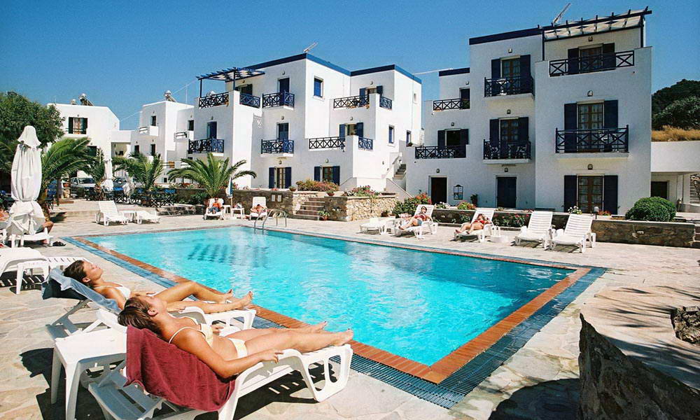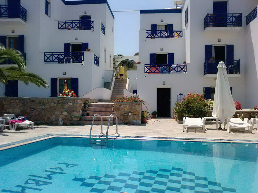 On the west side of Syros, "the Lady of the Aegean Sea", you will discover the most beautiful tourist resort, Galissas. At a distance of less than 250 metres from the perfectly clear, sandy seaside, you will find Remvi Hotel, a newly built and fully equipped hotel that consists of two-bedded rooms, studios, and apartments. The rooms have a refrigerator, a private toilet, and air conditioning. The majority of the balconies overlook Galissas Bay and Remvi's pool. There's a pool bar and a beautiful outdoor pool. Free private parking is another amenity available to visitors. Remvi Hotel in Syros is 8 kilometres away from the port and the airport and just 100 metres away from restaurants, mini markets, and cafés. Hotel Remvi is a destination popular for quiet retreats and relaxing vacations in Syros.