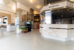 With 100 cozy rooms, Hotel ABC is well situated in the heart of Thessaloniki. The meeting room, "MAKEDONIA," the café bar, "LA FONTAINE," and the breakfast area, "ARETHOUSA." Offering cheap prices and a pleasant and comfortable stay, we cater to both leisure and business visitors. Located just across the university campus and the International Trade Fair grounds of Thessaloniki, the ABC hotel is a well-liked accommodation option that is easily accessible by foot from the Archaeological and Byzantine Museums, as well as the vibrant shopping center and a plethora of dining options, cafes, and bars in the vicinity.