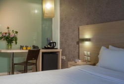 You will be in the center of Thessaloniki when staying at the Hotel Rotonda. Select quality along with affordability, a prime position near the city's train station, a complimentary breakfast buffet, free parking, and a welcoming staff that is always there to help. Ideal for both business and leisure travelers who want to take in the splendors of Greece's second-biggest city. The Rotonda offers large rooms with balconies, mini fridges, and flat-screen TVs. Each comes with a desk, a laptop-size safe, and complimentary Wi-Fi. Enjoy the continental breakfast buffet every morning to start the day exploring the beautiful Thessaloniki. Aristotelous Square is 2 km (or a 15-minute walk) from the Rotonda hotel. It's only a kilometer to the city center. Only 300 meters separate you from the metro station that leads to the city center and the airport.