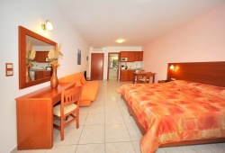 The large, private balconies of the Pelopas rooms provide a kitchenette complete with a microwave, coffee maker, and toaster. Included is a satellite TV with a DVD player. Free Wi-Fi is offered throughout the entire property. The facility has a free swimming pool with a separate kid's area as well as a sun deck furnished with cozy sun loungers and umbrellas. A sauna and a children's play area are among the other amenities.