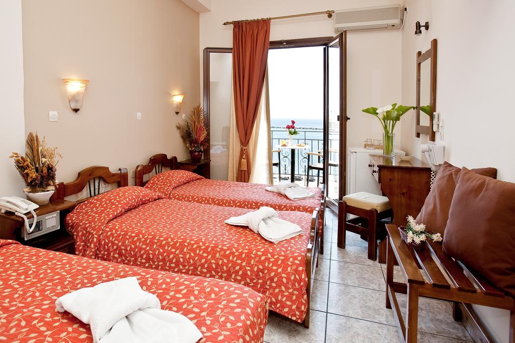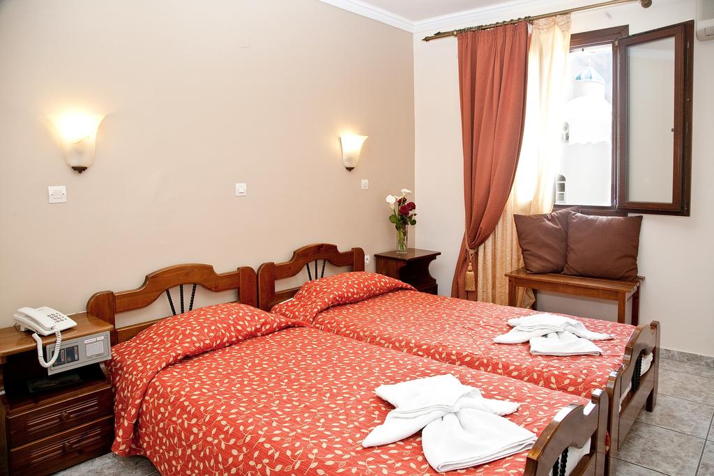 Poseidonio is a family-run hotel in Tinos, a 2-star hotel, situated on the most beautiful Cycladic island, in the heart of the historical town, only a few meters from the Church of Evangelistria. You will be impressed by the hotel's location, which makes it easy to access all of Tinos' attractions without requiring a car. This also holds true for your nighttime strolls around the city's vibrant nightlife. Every air-conditioned room has a minibar, a safe, and a hairdryer in the bathroom. Certain rooms at Poseidonio have access to their own balconies. A TV room and a lounge with a café bar are among the general amenities. The continental breakfast is provided as a buffet.