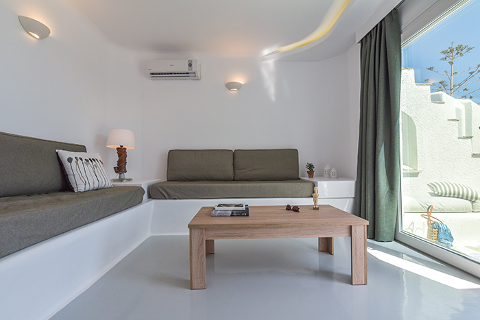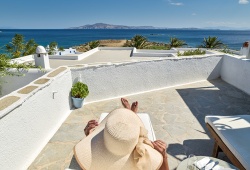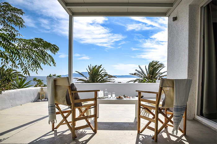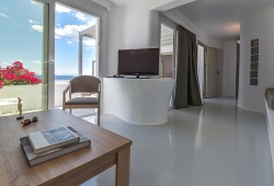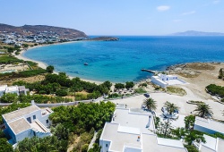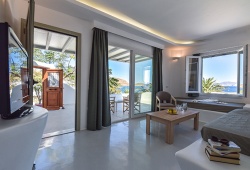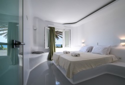 Cavos Hotel is situated in Agios Sostis and is 5 km away from the town and harbor of Tinos. One of the most stunning beaches on the island, the sandy beach with crystal-clear seas that stretches from Agios Sostis to Agia Kyriaki, is only a short distance away. The complex is laid out with whitewashed streets, arches, curves, trees, and flowers all throughout to resemble the appearance of a real Tinian village. Enjoy spacious suites and studios combining minimal and elegant Cycladic architecture with high quality services and amenities. They all offer amazing views to the Aegean Sea and can accommodate 2-4 guests. They feature a small, fully equipped, kitchen and beds with Coco-mat mattresses. Cavos Hotel includes a poolside bar. Additionally, there is a breakfast-serving all-day café and restaurant in a shaded courtyard, as well as an inside lounge. Breakfast is also available to you in your room.