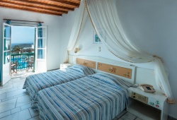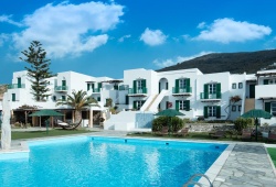 Porto Tango Hotel is a first-class hotel located on the south-east coast of Tinos Island, by the bay of Agios Ioannis Porto. The accommodations are built in a theatrical structure looking out at the magnificent seafront of Agios Ioannis Porto. The luxurious suites, in combination with the high-quality services offer and delicate facilities, create a unique atmosphere of elegance. All rooms have panoramic sea views. Room amenities are needed for a comfortable stay. They come with A/C individually controlled, television, bathroom with toiletries, hairdryer, mini bar, wifi access and balcony. Porto Tango serves a buffet breakfast in the morning and invites guests to have a drink at a pool bar. The hotel is 30 meters from the Aegean Sea in Tinos. The accommodaion is within ten minutes' drive from Agios Fokas Beach. When desiring to travel to Tinos, book Porto Tango Hotel and enjoy your stay.
