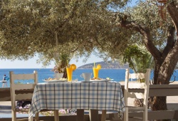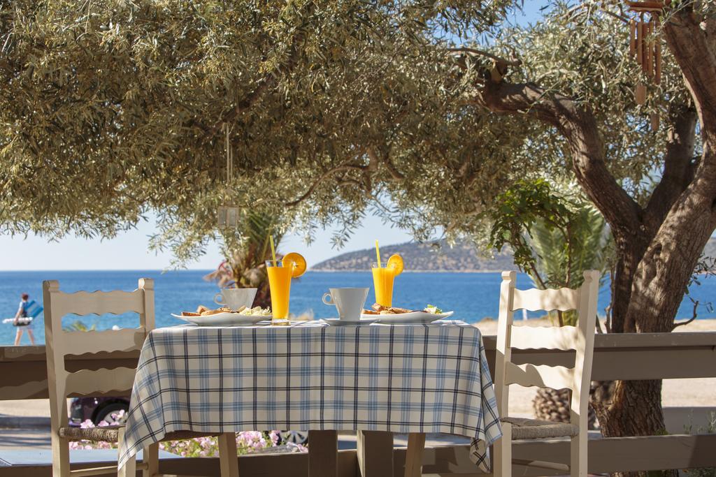 With breathtaking views of the sea and the beach, Golden Beach's Cafe Restaurant Bar is located just across from the beach. A breakfast area with a daily buffet is also offered. In the café, guests of the hotel as well as the general public can order drinks, coffees, and typical Greek home-cooked meals, salads, appetizers, snacks, and desserts. There is also a take-out option available for those who would like to take their purchases to the beach.