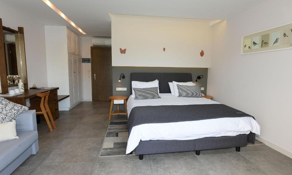 The luxurious Minoa hotel is situated on the edge of the waterfront and is perfectly situated on the sandy beach beside the charming Tolon port. Visitors may unwind and take in the perfect landscape along with genuine hospitality and services thanks to the breathtaking views of the neighboring islands and the soothing sounds of the sea. Every room and suite has been completely remodeled to the highest standards and offers a range of choices to meet the demands of couples, families, and tourists who want to see the region. The room comes with air-conditioning, TV, a minibar, a bathroom with a hairdryer, and free toiletries. The Hotel Minoa has excellent interior and outdoor amenities, including a terrace, bar, and indoor dining space. Every day, visitors can savor classic Greek cuisine made with local and fresh ingredients, have a drink at the bar, or eat breakfast on the patio by the sea. In addition to stores selling souvenirs and a variety of other goods, Tolo is home to a number of restaurants and bars for your amusement.