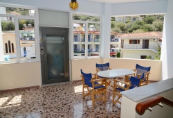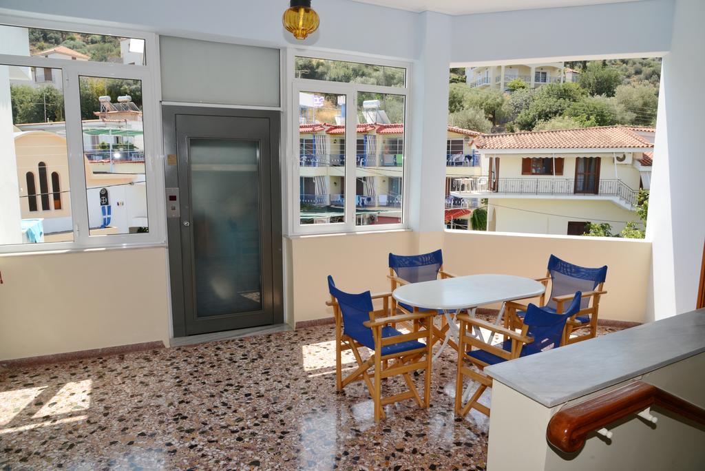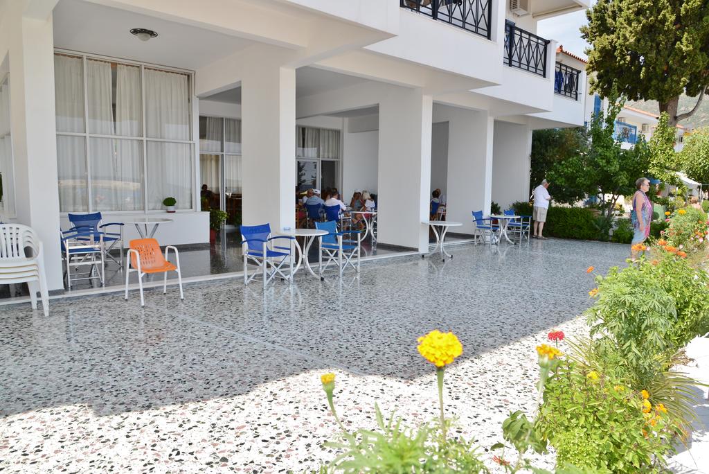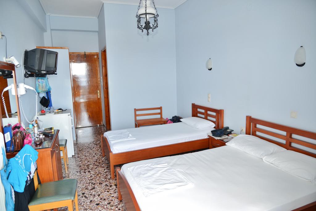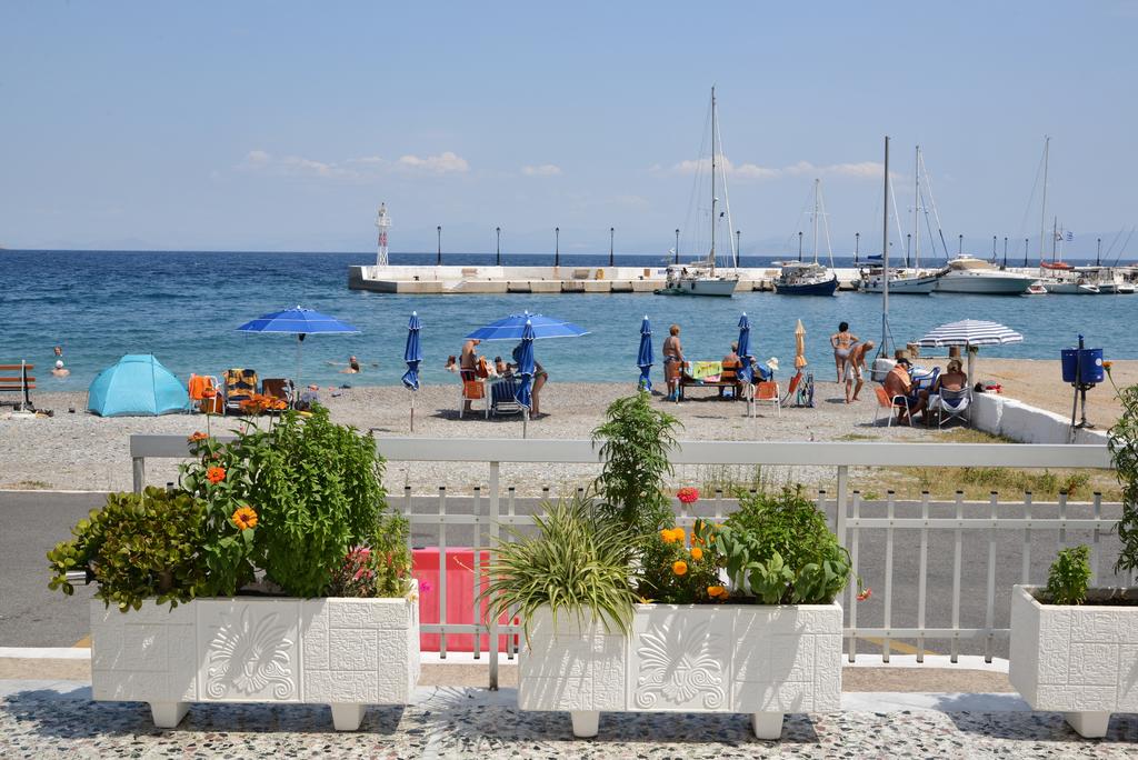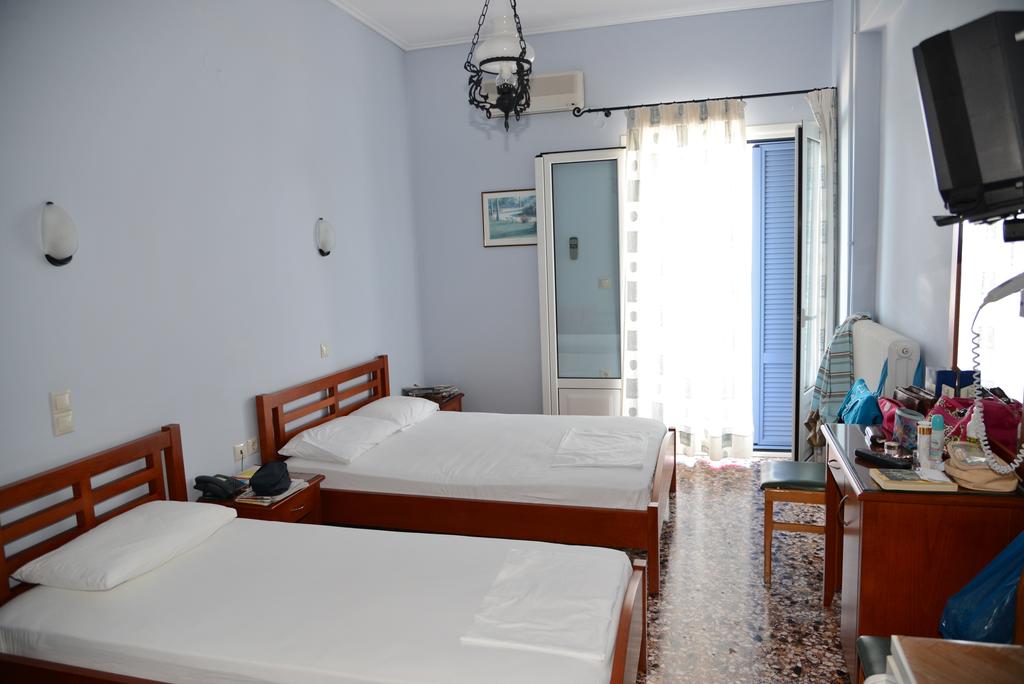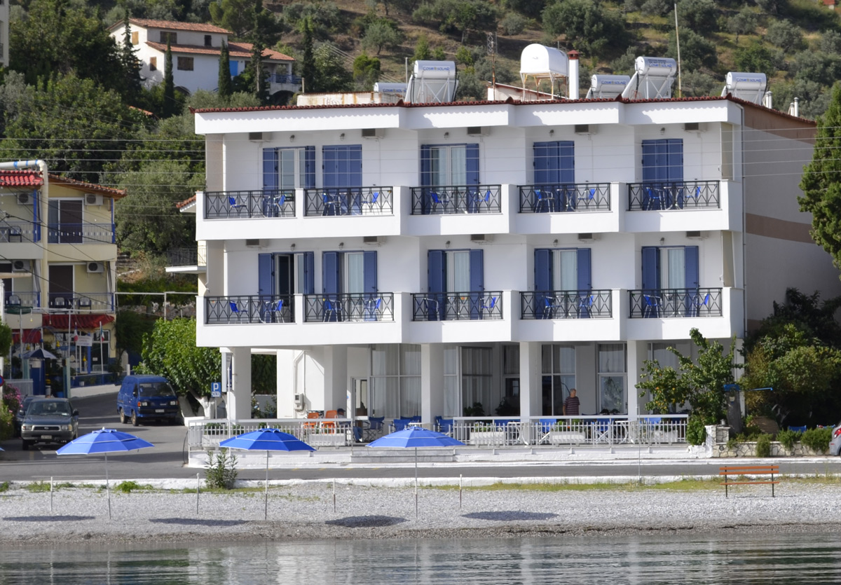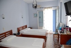 The Blue Sea hotel features remodeled rooms, a dining room for breakfast and leisure spaces, entertainment, and a front row of umbrellas and sun loungers facing the Tyros beach. The hotel offers free internet access throughout and parking spaces. There is a TV, a refrigerator, safe box and air conditioning in each room. Every room has a private bathroom that has a hair dryer and a shower. Balconies have views of the mountains or sea.