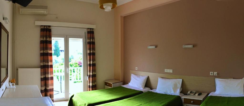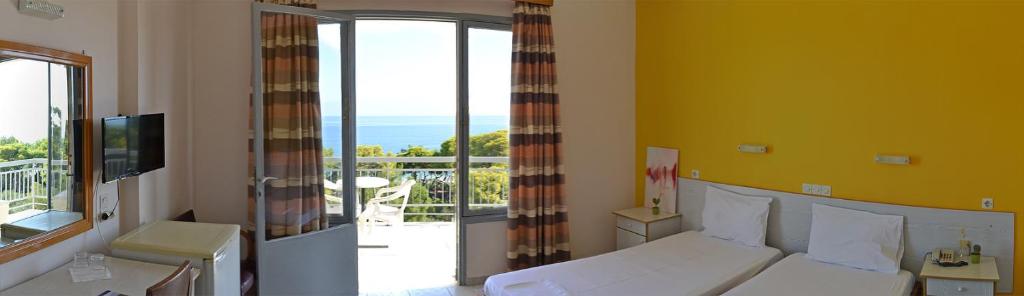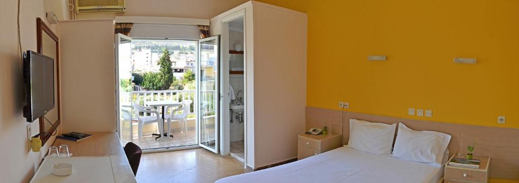 Hotel Miramare is a small family hotel situated just across from Pefkias, Xylokastro's natural wonder. This hotel is the ideal location if you're searching for a peaceful setting among the forest and the sea, yet still accessible to the town center. The 23 spacious single and double rooms at Hotel Miramare have been refurbished and equipped with modern conveniences to provide a respectable and comfortable stay. You can have your morning coffee, evening treat, or nightcap on our hotel's large veranda while taking in the aromas of the pine trees and the sea breeze. There are numerous supermarkets, cafes, bars, and stores within a 300-meter radius. You may enjoy a coffee by the sea at arranged beach bars with parasols and sunbeds within 200 meters of walking through Pefkias. Lastly, there are a number of options in Xylokastro that are accessible by foot for your night outs.