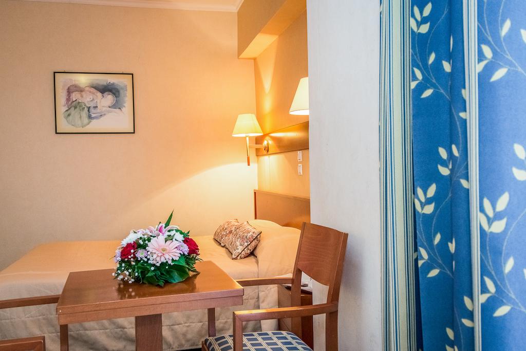 Situated in the town of Zakynthos, just a short distance from the city center, Hotel Palatino provides visitors with various conveniences, a warm and inviting ambiance, and friendly service. With their opulent furniture and balconies offering views of the city's hills or the turquoise Ionian Sea, the 62 rooms, 4 family rooms, and 2 junior suites provide all you need for a relaxing and pleasurable stay. Rooms come with airconditioning, bathroom with hairdryer, mini fridge, TV, telephone, wifi, and balcony. There is a conference facility with three rooms that can hold gatherings and meetings for up to 300 people. It is opulent, air-conditioned, and equipped with every media convenience you might want for the meeting.