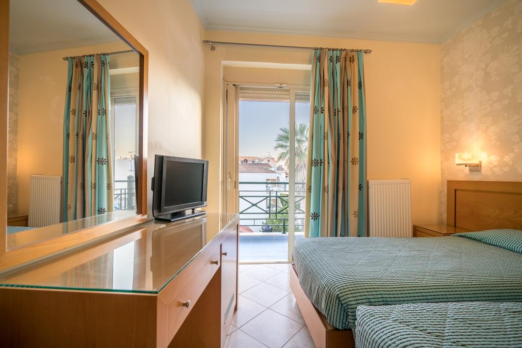 Situated in the Agia Triada area of Zakynthos town, the Plaza Hotel is only a short distance from a charming pebbly beach. With a grin, the accomodation provides all the amenities one could want from a city hotel. A few of the amenities include internet access via wifi, a breakfast buffet, reservations for taxis and cars, information on local excursions, and an internet corner. A variety of accommodation types are available to accommodate the tastes of every visitor. The Plazza hotel rooms come with a bathroom with shower or bathtub, telephone, refrigerator, satellite TV, hairdryer, slippers, bath amenities, safety deposit box and furnished balcony overlooking the sea.