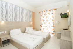 Exit the Klelia Hotel and explore the nearby Kalamaki beach, which stretches along Lagana's golden sandy coastline and has excellent crystal-clear blue water. There aren't many watersports available apart from canoes and pedaloes since turtle safety comes first. There are many of stores, bars, Greek tavernas, and restaurants serving foreign and local cuisine in this area. Just next to the hotel, there is a bus stop to take you to Zakynthos Town for sightseeing. The Klelia Beach hotel is 2.5 kilometers from Zakynthos airport.