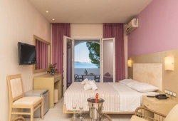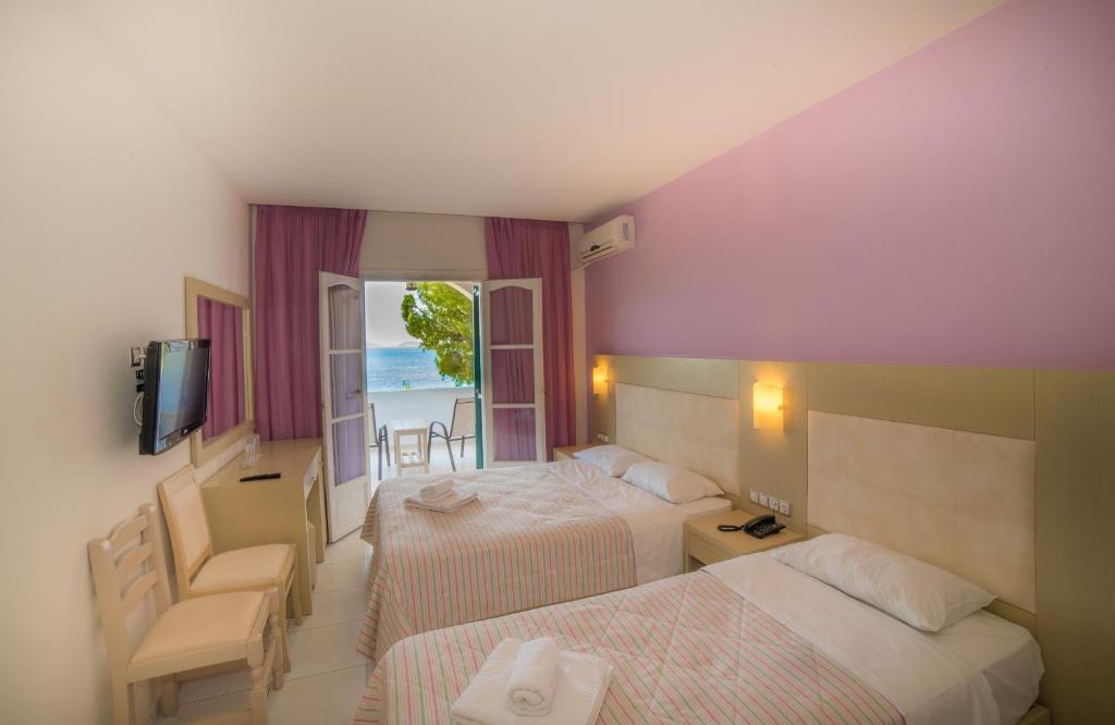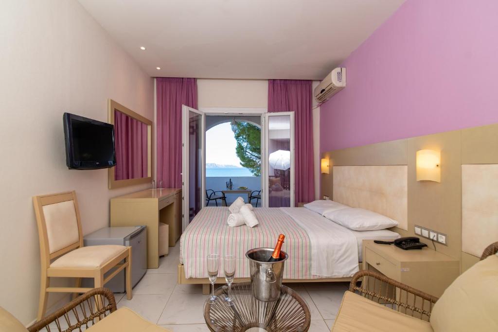 The charming Porto Koukla hotel is situated in Zakynthos, just a short distance from the tempting, crystal-clear waters of Keri. With its Ionian-style design and vibrant colors, it offers visitors a really Zakynthian experience. The natural peace and quiet that surrounds Porto Koukla will be combined with excellent service, delectable cuisine, and warm hospitality to provide the guests with an ideal vacation. Air-conditioned rooms with a minibar, a safety deposit box, a flat-screen TV, a balcony, and a private bathroom with a shower will be available to visitors at the hotel. In addition, there is a parking lot, a kid's playground, a restaurant, and a swimming pool with a bar. Adjacent to the well-known resort of Keri, where local fishing boats are housed in the little harbor, daily journeys to the beautiful Keri Caves and the small island of Marathonisi (Turtle Island) are provided by boat trips. Zakynthos Airport is 7 km from Porto Koukla Beach Hotel.