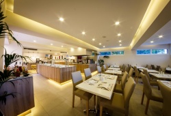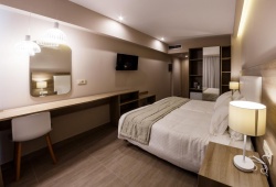 Porto Planos Beach Hotel is located in the heart of Tsilivi, just a breath away from the Blue Flag sandy beach. Everything you may need during your stay in Zakynthos, from a traditional Greek meal to a lively night out, is just a few steps away. Enjoy absolute relaxation in one of the rooms, which have been specially designed to savour the exclusivity, peace of mind, and comfort of a four-star hotel. All rooms are equipped with single and double beds and offer fridge and a kettle, seperate bathroom with shower, hairdryer and WC. They also provide air - conditioning and TV. Take use of the sunloungers in the swimming pool to unwind. After an exhausting day of touring, stop by the hotel's bar for a drink. Visit the spa center for body care and massage treatments; there's also a gym where you can work out.