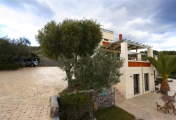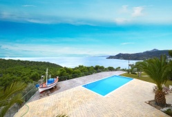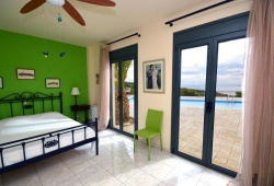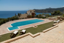 Surrounded by a large plot of land and native vegetation, attached Aphaia Villas I and II have been designed to offer a feeling of serenity to visitors in Aegina. The plot (shared with two more houses with their own outdoors/pool, built some meters above, but with no visual contact to the front part of Aphaia Villas and the pool) is set near the sea while also being protected by a stone wall that fits nicely with the gentle slopes of the hill. The property is accessed through a few-meter (approx. 250 m) country road at the end of the route.