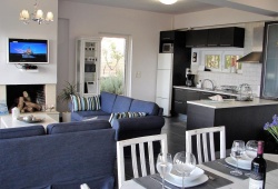 board, oven, coffee makers, microwace and a toaster. Outside at the spacious courtyard is an outdoor a fully equipped BBQ area, and a particularly built place for memorable moments of fun and relaxation with your friends. The villa can accommodate up to six guests.