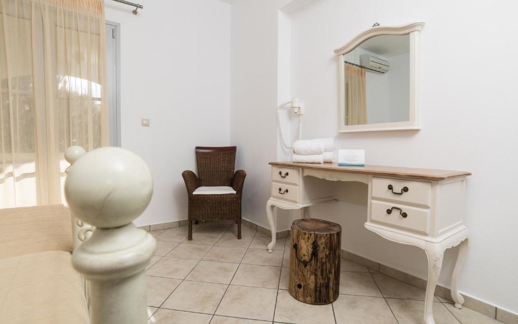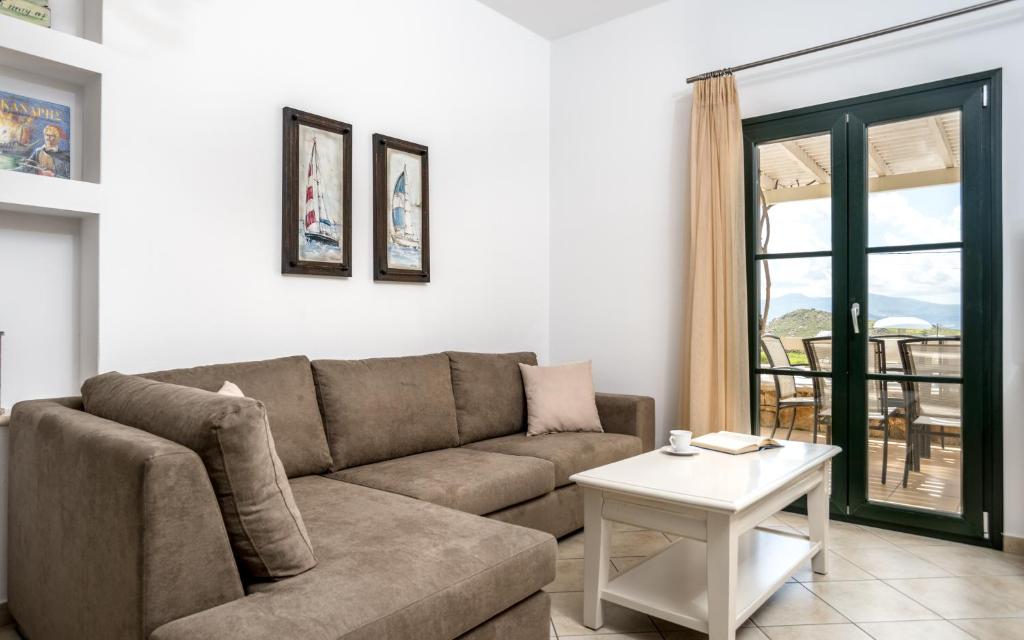 With generously sized living spaces, luxurious bathrooms, sophisticated décor, contemporary appliances, and private terraces with outdoor furniture and breathtaking views of the sea, pool, and garden, each exquisitely furnished villa is perfect for any vacationer's demands. They all have the distinct feeling of being a private home, emphasizing privacy, comfort, and space. Depending on the style, each villa at Iliada has a surface area of 80–180 square meters and may house 2–8 people. Each of them has a fully functional kitchen, tasteful furnishings, including gorgeous dining tables and incredibly cozy couches that can be made into beds, individual bedrooms with twin or double beds, contemporary bathrooms with showers or bathtubs, storage areas, independent air conditioning, double-glazed windows, big-screen TVs, and more useful amenities.