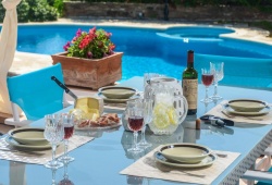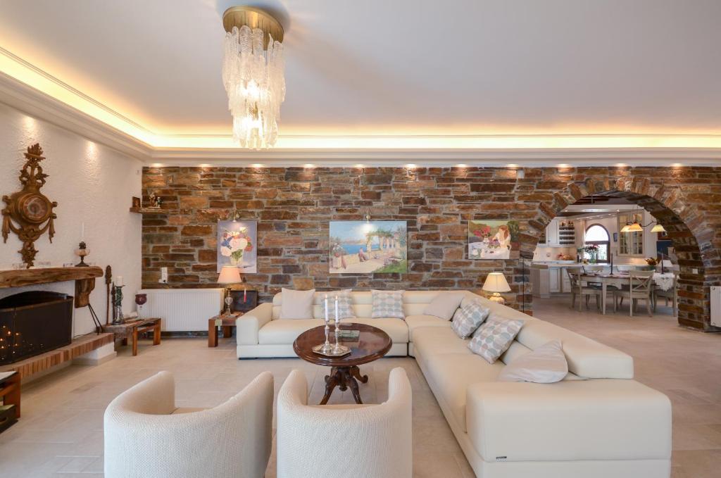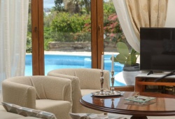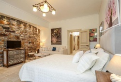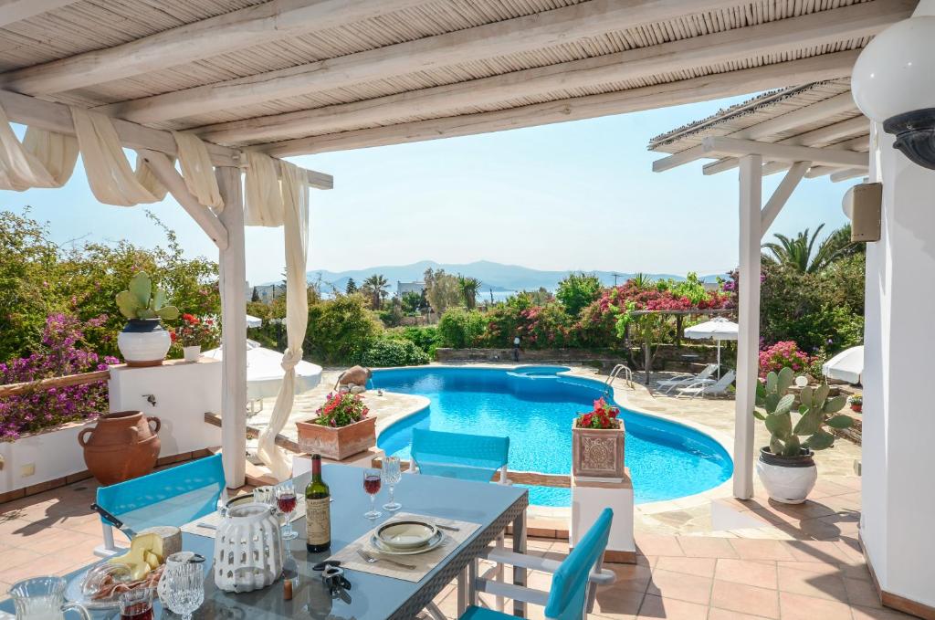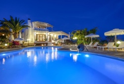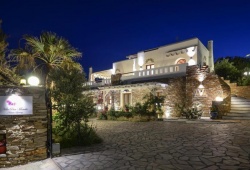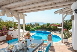 On the Greek island of Naxos, in the picturesque area of Agios Prokopios, is the exquisite and luxurious residence known as Villa Pari Manda. The property has breathtaking views of the surrounding landscape and the Aegean Sea from its own private gardens. The beach and the vilalge of Agios Prokopios are both only a short stroll from the property. Pari Manda villa has been constructed to a very high quality and is well furnished and fitted. There are three double bedrooms with private bathrooms, a spacious living/dining area, and a fully furnished kitchen. A sun deck, a private pool, and a shady sitting space are located outside. The villa can accommodate up to 8-10 guests.