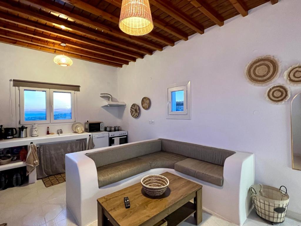 Lux Mykonos House, a 70 square meter home ideal for a luxurious holiday on the island of the winds, is ideal for families, groups, and couples. With two king-size bedrooms, a nearly 360-degree panoramic view, the Aegean Sea, and the spectacular sunsets of Mykonos while seeing up to seven neighboring islands, the home can sleep up to four people on a private 4000 square meter site.