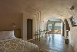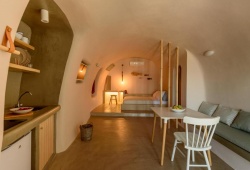 Diligent travellers may find the ideal blend of modern design, classic luxury, and evocative ambiance at the Sublime Villa & Caves. Minutes from the historic Bronze Age settlement of Akrotiri, the property is located on Santorini's southern shore and was completely renovated in 2016. It is tucked away from the usual tourist trails. The villa boasts a large, open-air patio with stunning views of the Aegean sunsets to the south, two luxurious bedrooms, a fully equipped kitchen and a stylish bathroom. The villa can accommdate up to 2 guests.For couples and families seeking some of the most serene living conditions in the Aegean, Sublime Villa & Caves in Santorini is an ideal destination for relaxation. Visit Akrotiri; its sun-kissed beach invites you to immerse yourself in peace and make a connection with the ancient energies that continue to reverberate through these legendary regions. It provides a refuge from the bustling tourist scene of Fira. Discover Akrotiri's ageless appeal in Santorini, where leisure and history blend to create a calming atmosphere. Book Sublime Villa Now!