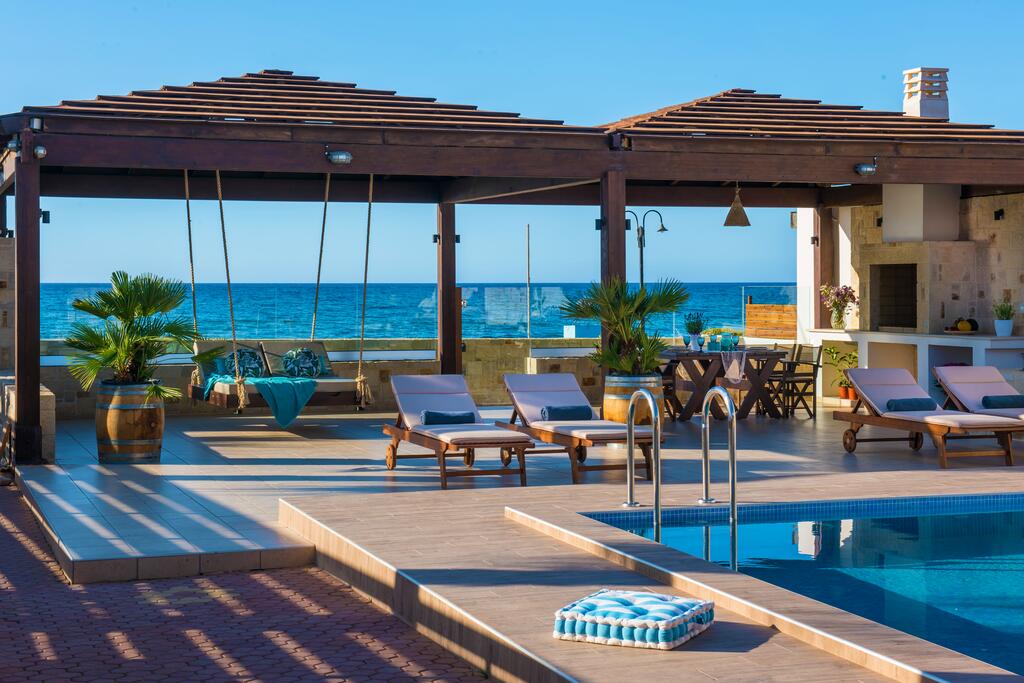 Mare Beach Villa is situated in a sought-after area of Analipsi, in the heart of Crete Island, right next to a beach, 25 kilometers from Heraklion Airport and the port, and less than 5 kilometers from the bustling city of Hersonissos. Everything you want is conveniently within a short stroll from the beach property. You may walk to supermarkets, restaurants, tavernas, bars, and experience the activity of Cretan shopping.