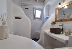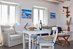 Experience the allure of the Antheia Suite located in the region of Ano Mera in Mykonos, where every element has been carefully planned to honor the rich Cycladic culture and classic Mykonian architecture. Bask in the serene elegance of the mostly white Suite, where classic hardwood logs and simple construction combine to create a charming ambiance. This fascinating suite offers all the facilities needed for an unforgettable vacation. The home features an open-plan kitchen with a Nespresso coffee maker, a huge living area with a built-in couch bed, a separate bedroom, and a bathroom with white walls. It also has beamed ceilings. There is free on-site private parking as well as free WiFi. The suite can accommodate up to 3 guests.