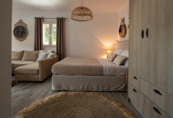 Olive Villas is situated in Ano Mera around 7 km east of Mykonos Town. Ano Mera is a tiny town in the center of the island made up of various dispersed communities. It is also the only settlement on the island to be found inside. It is centered on a large central square that has Greek tavernas lining three of its sides. Situated in the region's center, the monastery of Panagia Tourliani, established in 1542, is the area's most notable feature. Travelers opt to explore the magnificent beaches of Kalo Livadi, Elia, Kalafatis, and Agia Anna, which are all close, because of the serene setting and position. If your are searching for privacy and relaxation, the Olive Villas in Mykonos is the perfect choice.