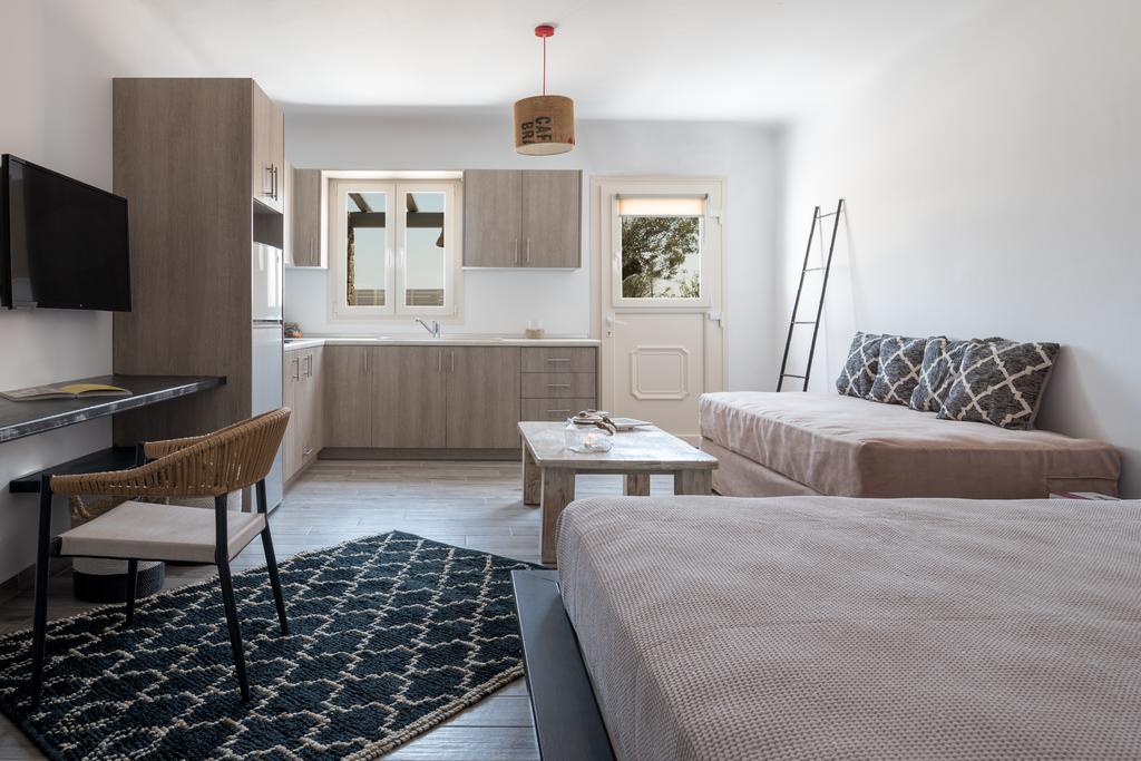 The Olive Mykonos Villas are located in Ano Mera, a small village in the center of the island of Mykonos. Olive Mykonos Villas in Ano Mera has a garden, a pool with a view, and accommodations with views of the mountains. Air-conditioned units with a desk, a kettle, a fridge, a safety deposit box, a flat-screen TV, a terrace, and a private bathroom with a shower will be available to visitors staying at the condo hotel. Some apartments also include fully functional kitchens with stovetops, ovens, and cookware. Parking is available for your private or rental car.