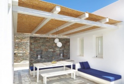 Built according to traditional Cycladic architecture and based on green housing standards, the Green Luxury Villa is situated in Ano Meria, Folegandros. The villa opens to terraces overlooking the Aegean Sea and Mylos Island. These villas, which are divided into two distinct lodging that may be rented separately, have two bedrooms with private bathrooms, an open-concept kitchen with dining space, and a large living room. A dishwasher, washing machine, Blu-ray DVD player, coffee maker Nespresso, and Apivita toiletries are among the amenities. Free WiFi access is provided in all areas. The villa can accommodate up to four guests. If your are planning to travel to beautiful island of Folegandros, make Green Luxury Villa your ideal accommodation.