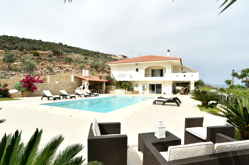 Villa Merika is located halfway between Kiveri and Xeropigado in the region of Astros, built in an amphitheatrical style on three levels with breathtaking views of the sea (40 m.) and the surrounding lush forested mountains. It is situated in the middle of a 1.85-acre farm with a lush garden of flowers, plants, and various fruit trees (orange, mandarin, olive, apricot, grapes, etc.) and a vegetable garden for guests. Moreover Villa Merika includes a 60-square-meter swimming pool, a barbecue, large terraces and outdoor areas fenced with stone walls and railings, an alarm system, etc. It has three bedrooms. The villa can accommodate up to 6–8 guests. If your looking for a quiet and secluded accommodation, Villa Merika is the ideal option.