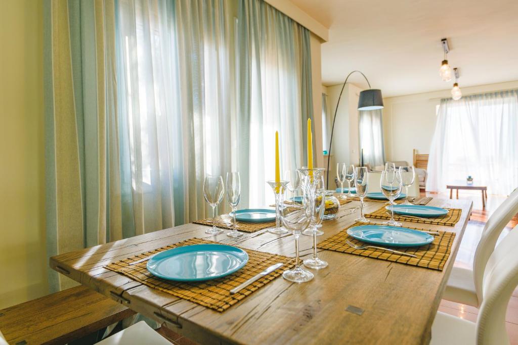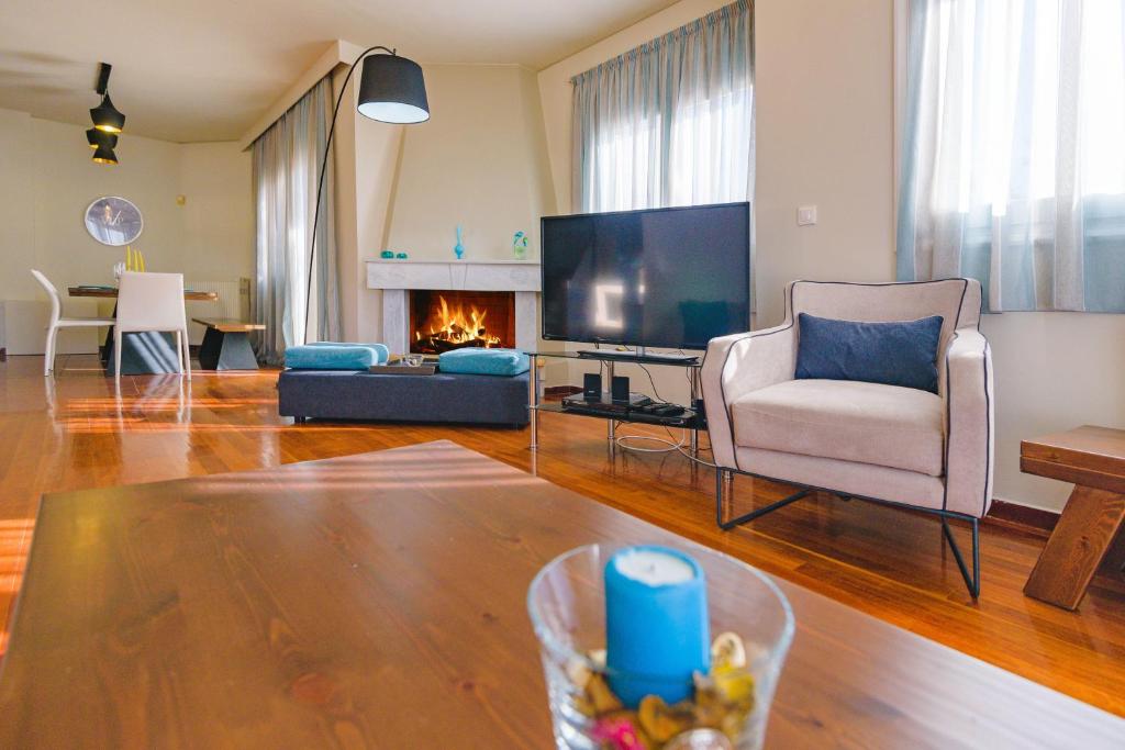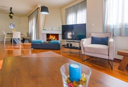Villa Politia has a view of the entire city and is located in the most upscale area in Athens. The top floor has five large bedrooms, including a master bedroom; one is a romantic attic with two more beds and a separate bathroom; there are three living areas with every comfort imaginable; one has a large kitchen, dining room, and sitting area; the other two have direct access to the private pool and garden area, inviting you to unwind and take in the stunning view. In addition, Villa Politia has TV screens, a bar, sun loungers near the pool, an elevator, private parking, Wi-Fi, and fire pits (for winter guests). The villa can accommodate up to 17 persons. Villa Polita has easy access to the airport and the highway to nearby Athens attractions, such as Delphi, Mycenae, Nafplion, Epidavros, and many more, which is just as crucial as being close to the city's historic core, upscale retail centers, and nightlife. The highway is easily accessible, allowing for a 30-minute drive to Piraeus Port or a day at the beach. You can take a one-day trip to several of the nearby islands from there. The best of Athens coupled with laid-back elegance is what this year-round location has to offer.