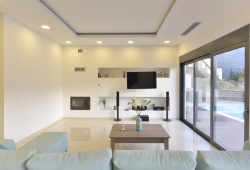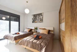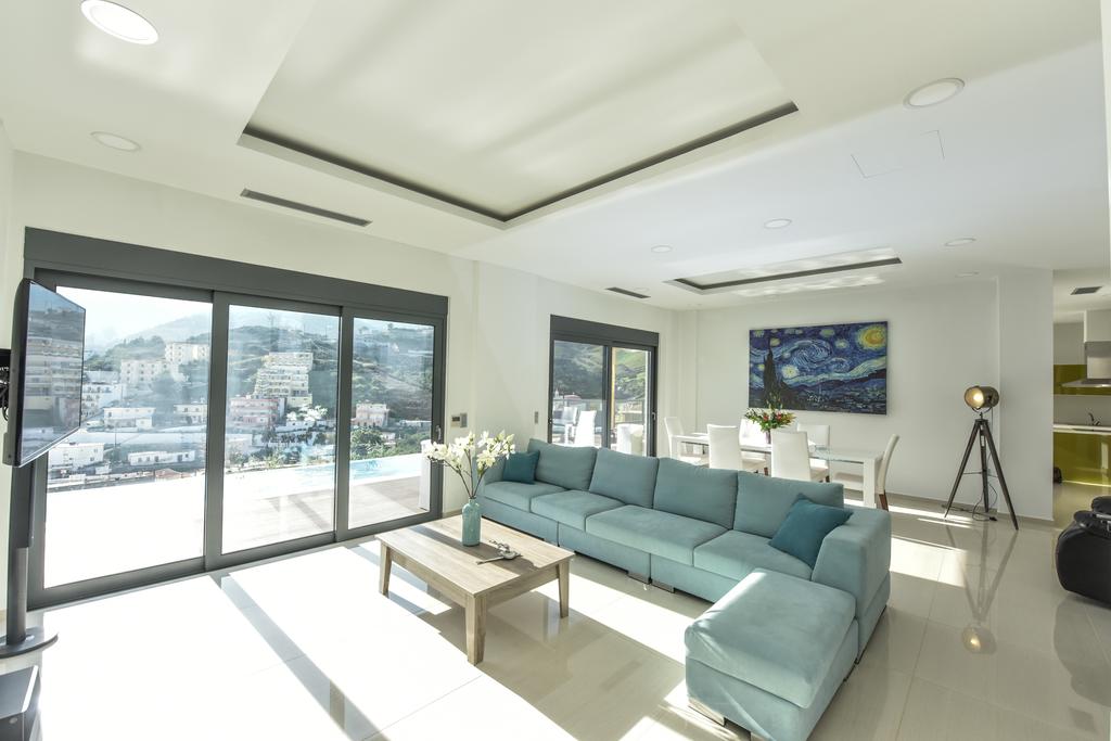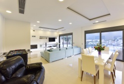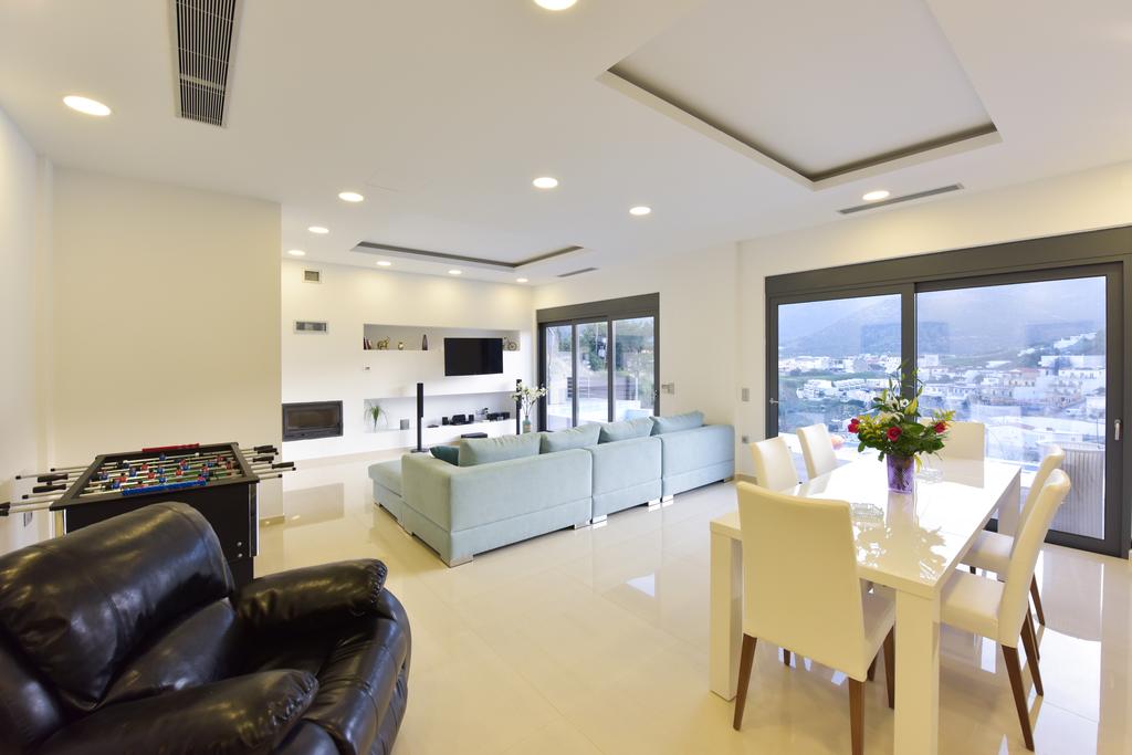 Villa Elli is situated on the island of Crete, in the unique Bali region. It is only a few minutes from two beautiful sandy beaches with crystal-clear waters. The two-story villa has three bedrooms, including a master suite with an en suite bathroom, as well as two other bedrooms, two bathrooms, and a laundry room. In addition, there's a large living space that has enough for two more people, a modern dining room, and a fully functional kitchen. There is a 40 m2 private pool and Jacuzzi outside with pristine waters, as well as alfresco dining and seating spaces with sweeping views. The villa can accommodate up to eight guests.